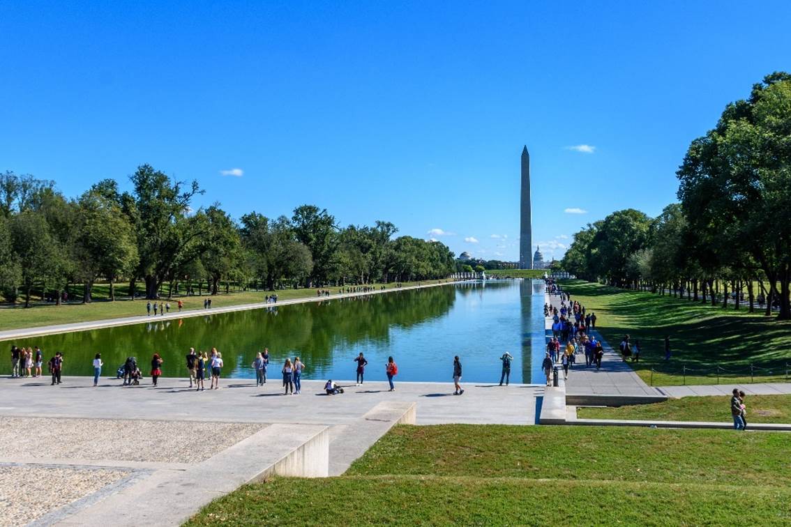 Conversely, that effect can be used to convey remoteness or great distance by virtue of near objects looking much bigger than far objects. This photo is an example in which the US Capital Building appears tiny compared to the Washington Monument, which is in turn swamped by the reflecting pool (sorry, I couldn’t help the pun).