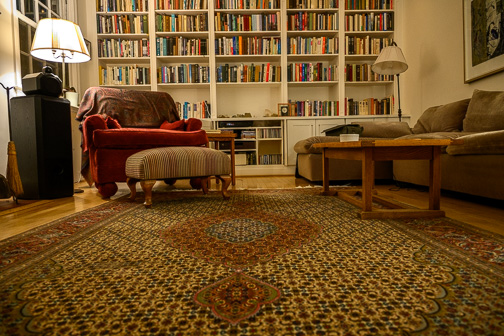 Notice that this last photo is still a bit on the warm side – reflecting the lighting at the time. In the image below, I take the temperature adjustment so that the walls look as white as they do during daytime. It depends on the impression you are going for, but to me, this looks a little less inviting.