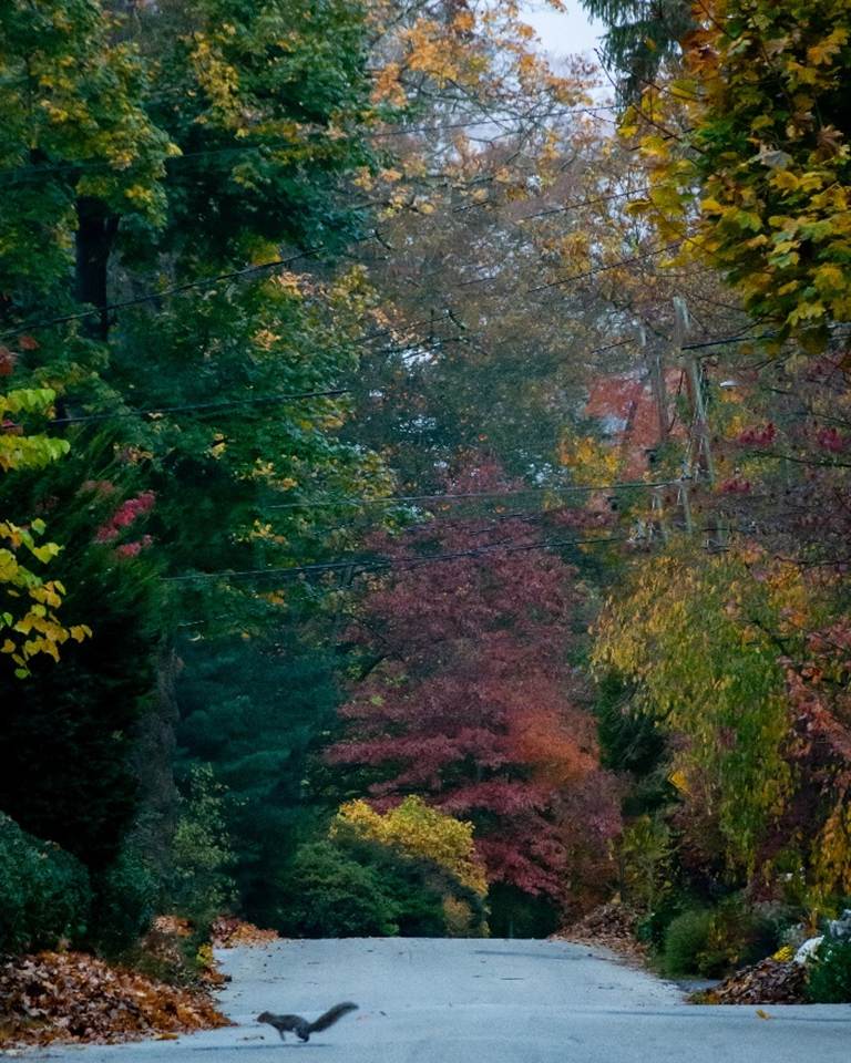 Autumn Moment. On this calm morning, as the world wakes up and autumn lights up its glory, I walk down the street to absorb the tranquility. Feeling more of a sense of urgency, a squirrel hops across the road on its busy way, preparing for the coming season. I do not wish to interrupt it, but rather to simply absorb the depth of beauty of this moment and stay in it.