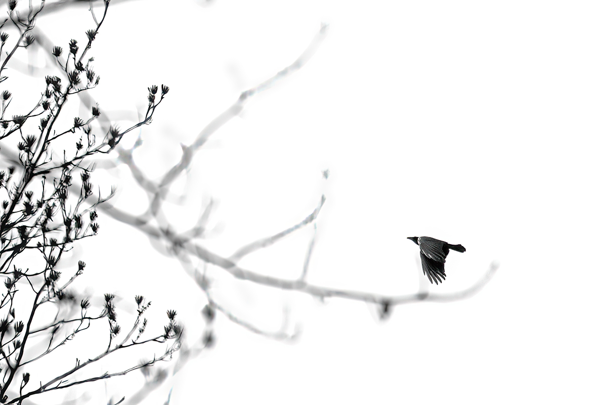 The blues of the sky can certainly make for beautiful backdrops in this kind of photo, as can a few nice, puffy clouds. But a slightly slower shutter speed on a completely overcast day can lead to beautifully blown-out white backgrounds that lend an awesome minimalist feel.