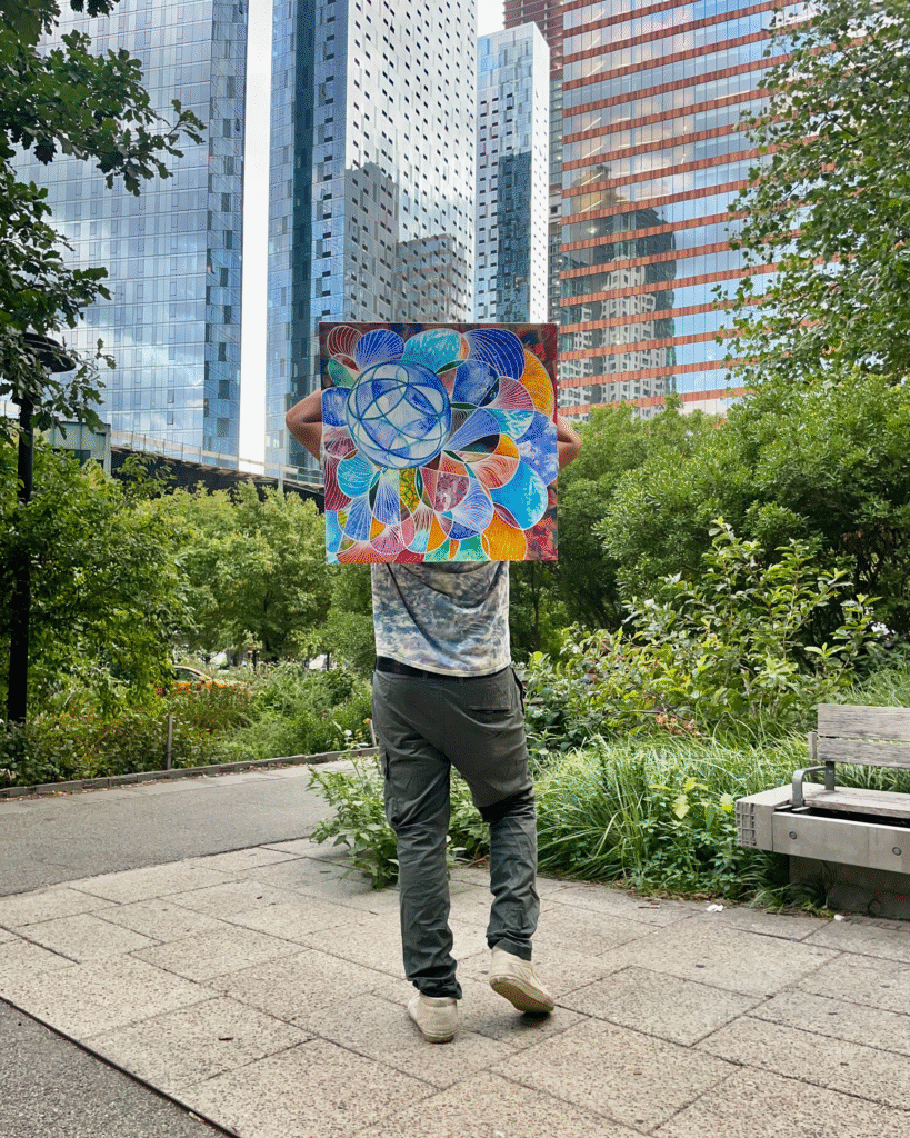 Working with spray paint, house paint, and markers, Timi builds layered surfaces that mix the energy of graffiti with the precision of pattern. His art has appeared in Miami, Boston, and Berlin, often shown in both galleries and public spaces.