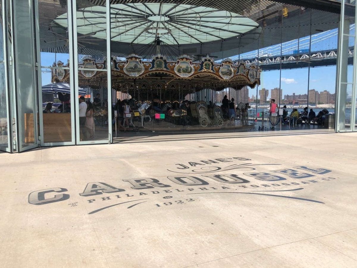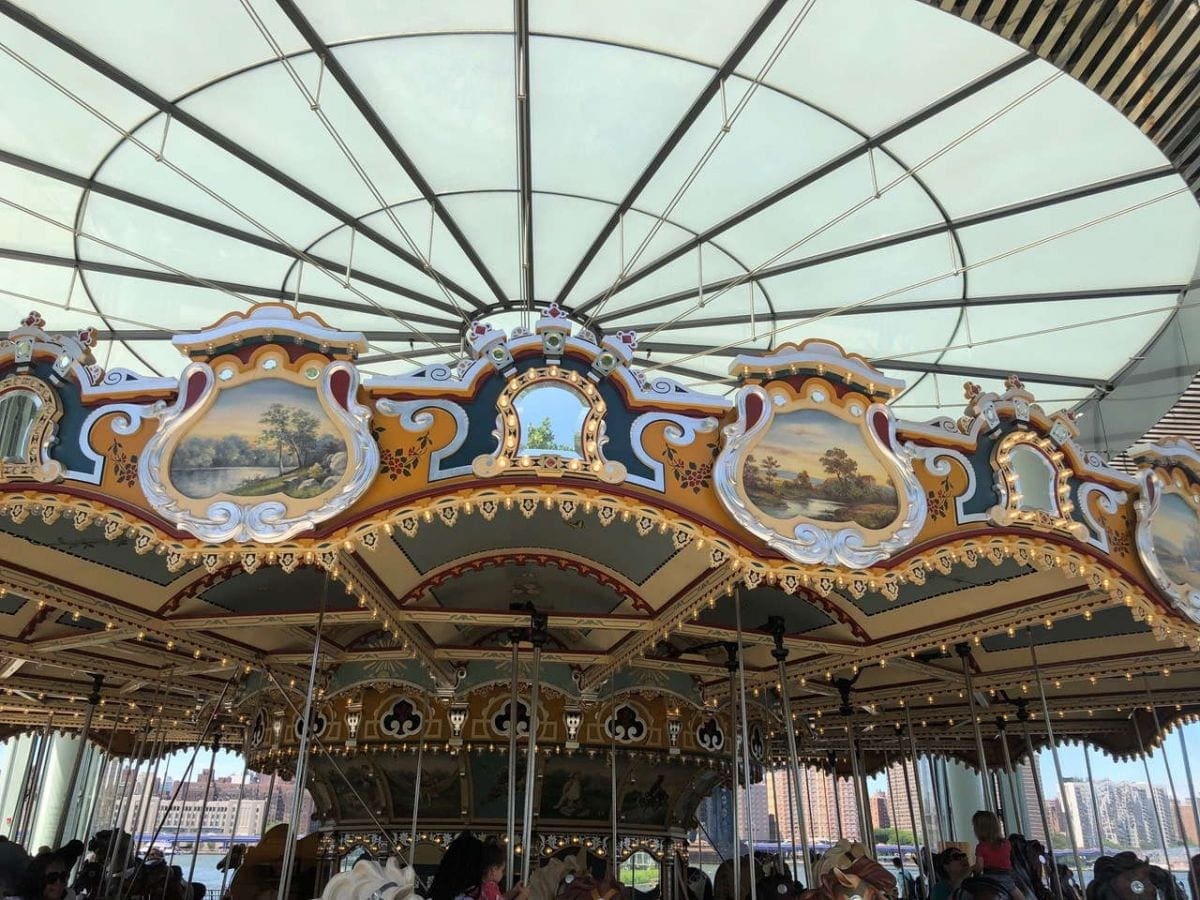 The photo ops include a variety of skyline and bird’s eye panoramas as well as simple blue sky and landscape greenery in Brooklyn Bridge Park, again creating yet another persona for the magnificent expanse. Catch the riverside street portraiture ops of hipsters, seniors, performance artists, musicians and the family scenes of pre-teens and baby carriages. The skateboarders, bicyclists and the whirl of Jane’s antique carousel offers freaky panning lessons and abstractions with its lines and rigid patterns.