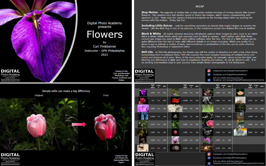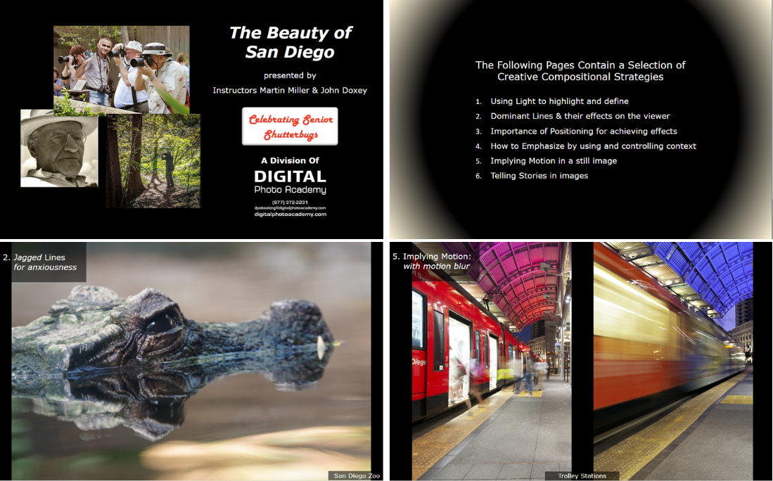Below are a few preview examples of Custom Photography Lectures. Each lecture is designed around a specific topic, with slides carefully crafted to provide practical techniques, tips, and inspiration!