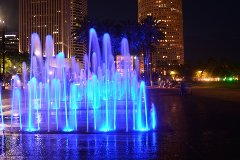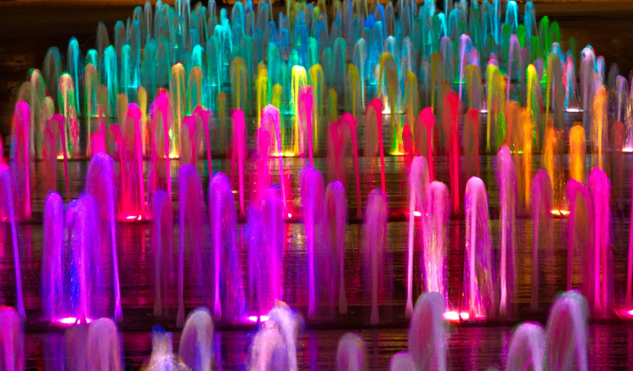 Water fountains at night.